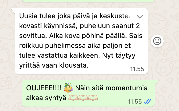 Ehkä sä jo teet myyntiä ja saat asiakkaita silloin kun jaksat hustlata menemään.