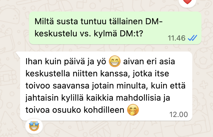 Vaikka en postaa päivittäin tai lähetä yhden yhtä kylmä DM:ää.